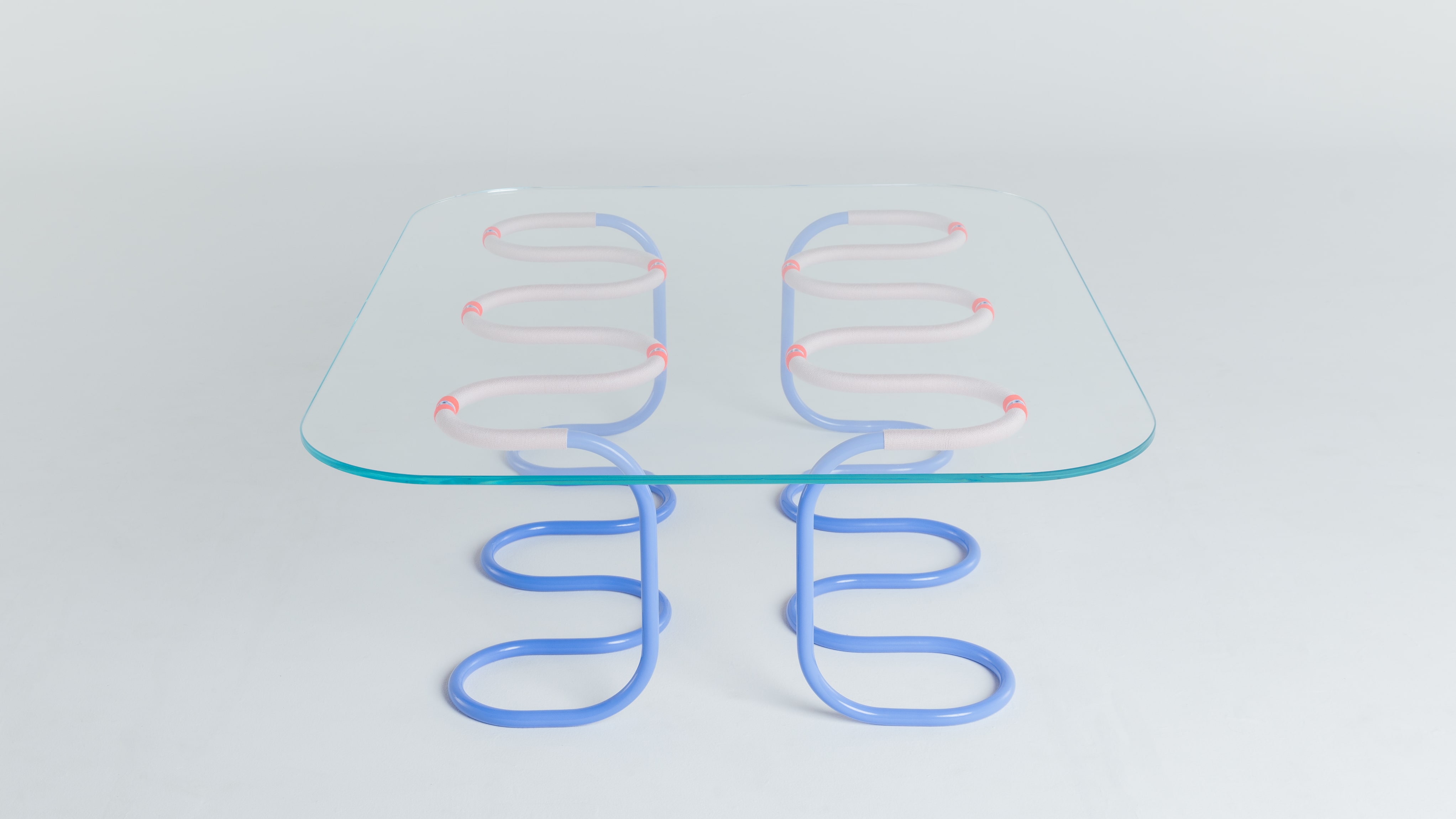 The Cord and Cordage tables are based on the use of cord in passementerie. Focusing on cord piping, a technique in which a flexible cord is couched down onto a ground material. The forms showcased in these pieces are derived from the idea of cord piping negative space